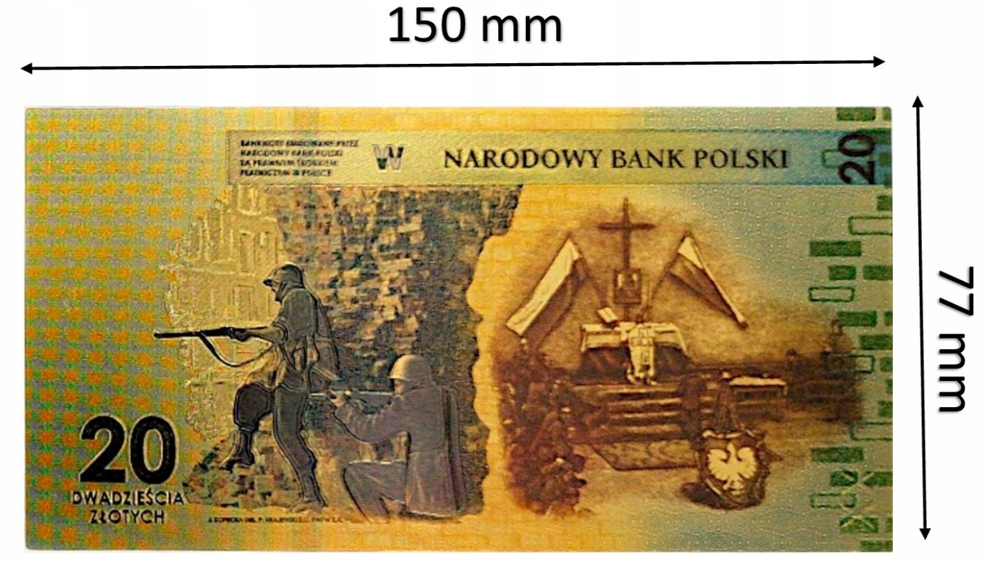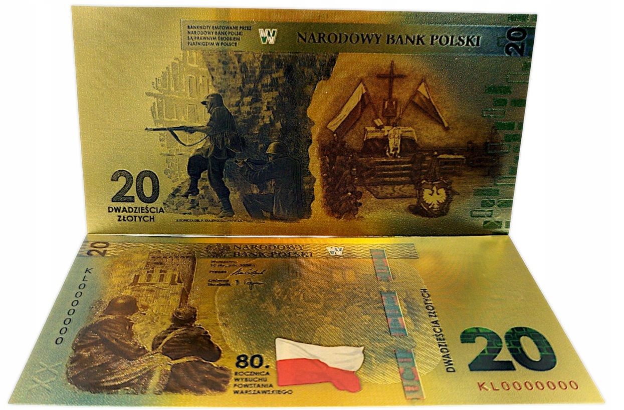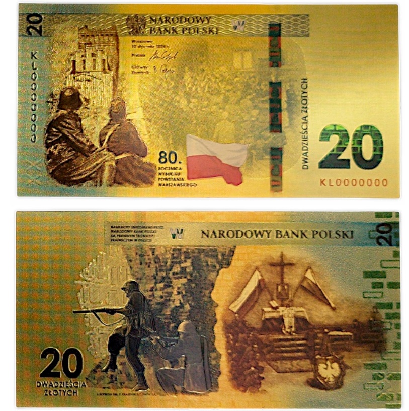 BANKNOT POZŁACANY 80 ROCZNICA POWSTANIA WARSZAWSKIEGO