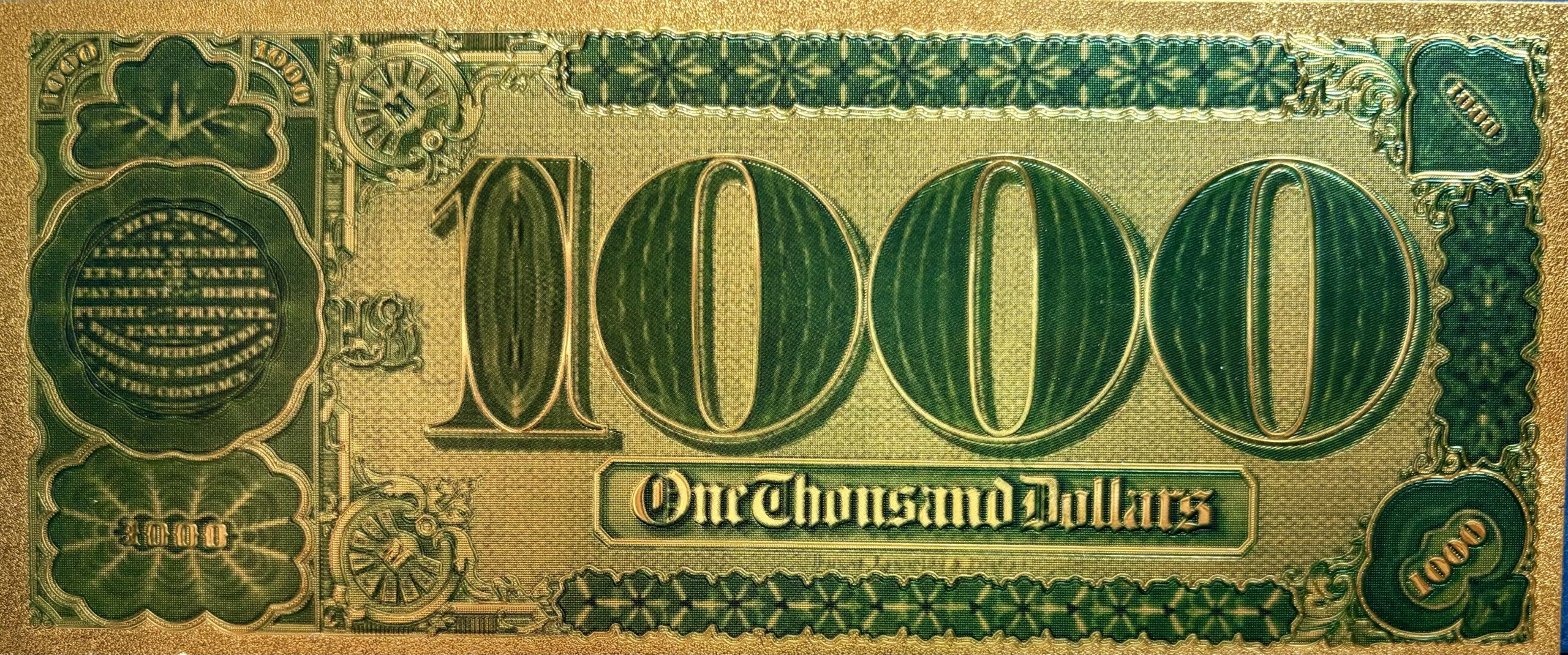 Pozłacany banknot kolekcjonerski o nominale 1000 dolarów.