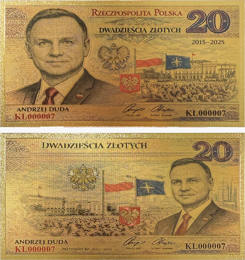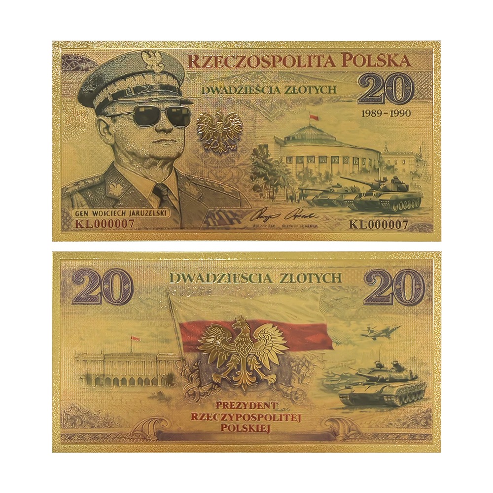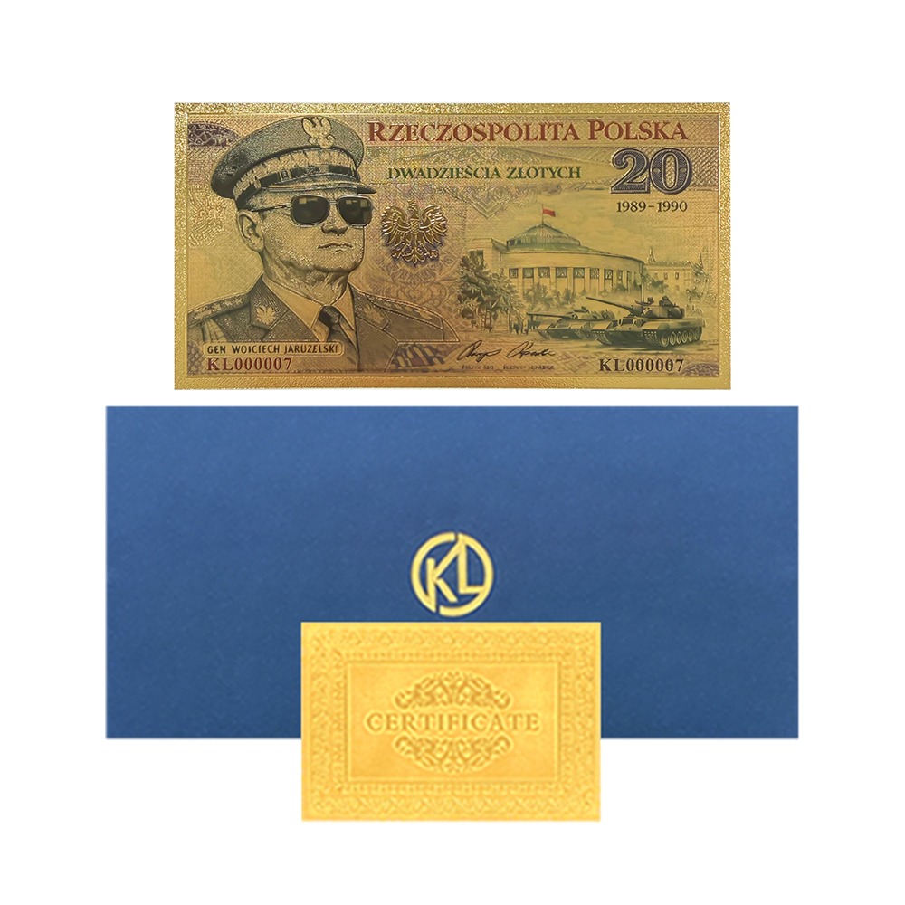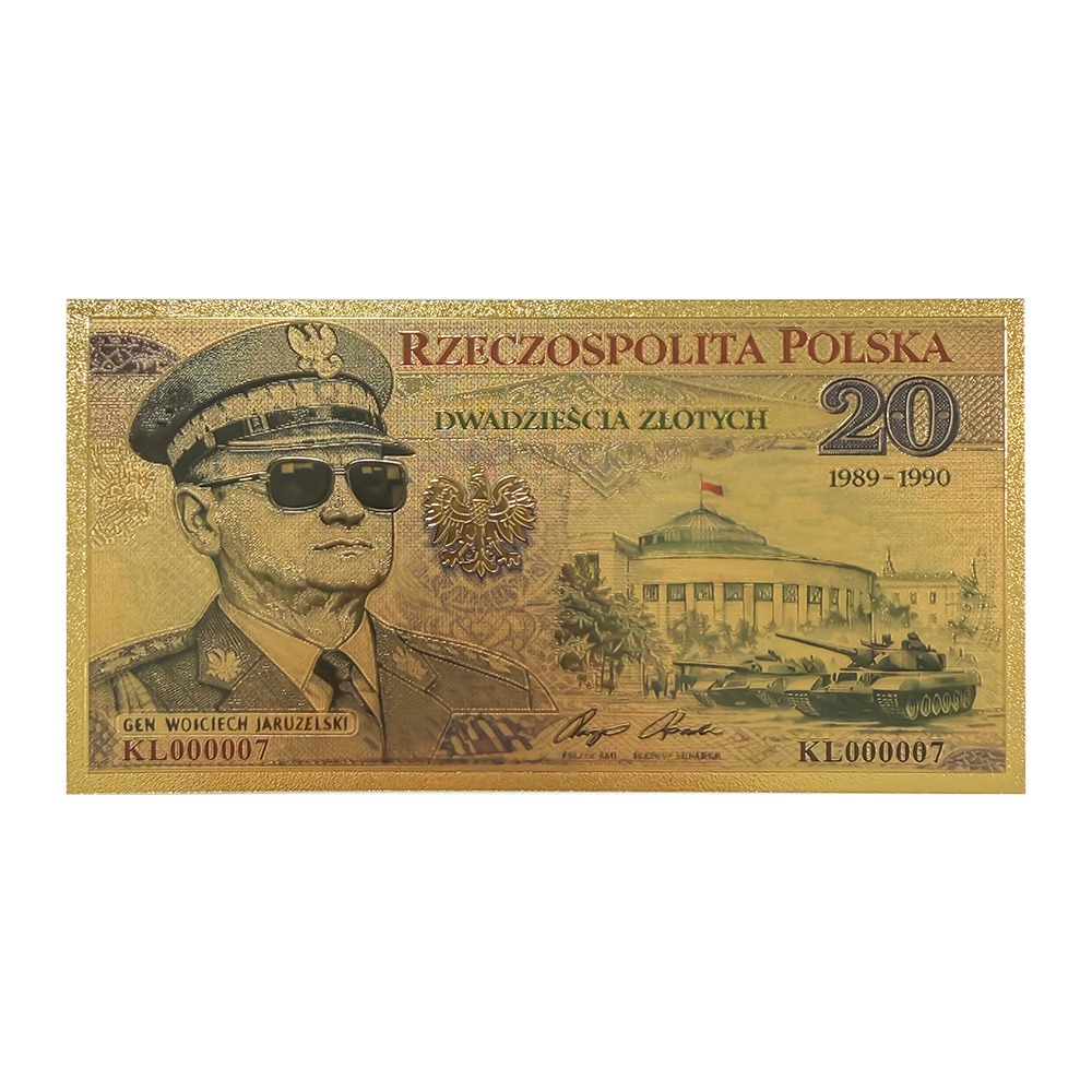 Wyjątkowy banknot kolekcjonerski przedstawiający generała Wojciecha Jaruzelskiego, który pełnił urząd Prezydenta RP w latach przełomu ustrojowego 1989–1990.