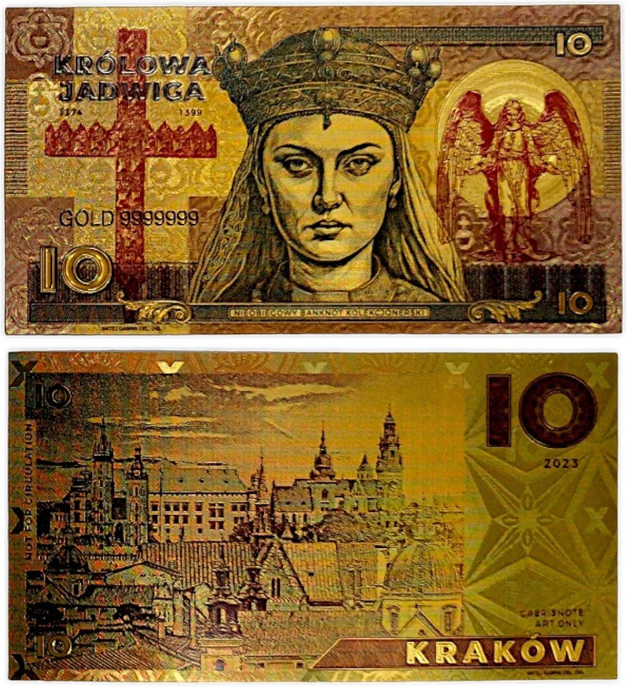 banknot kolekcjonerski, pozłacany: