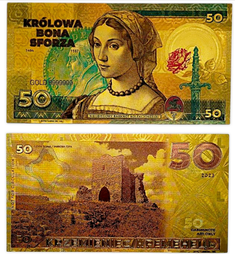 Banknot ten, misternie zdobiony i starannie pozłacany, to idealny prezent dla miłośników historii i sztuki, który zachwyci swoim eleganckim wyglądem i prestiżem.