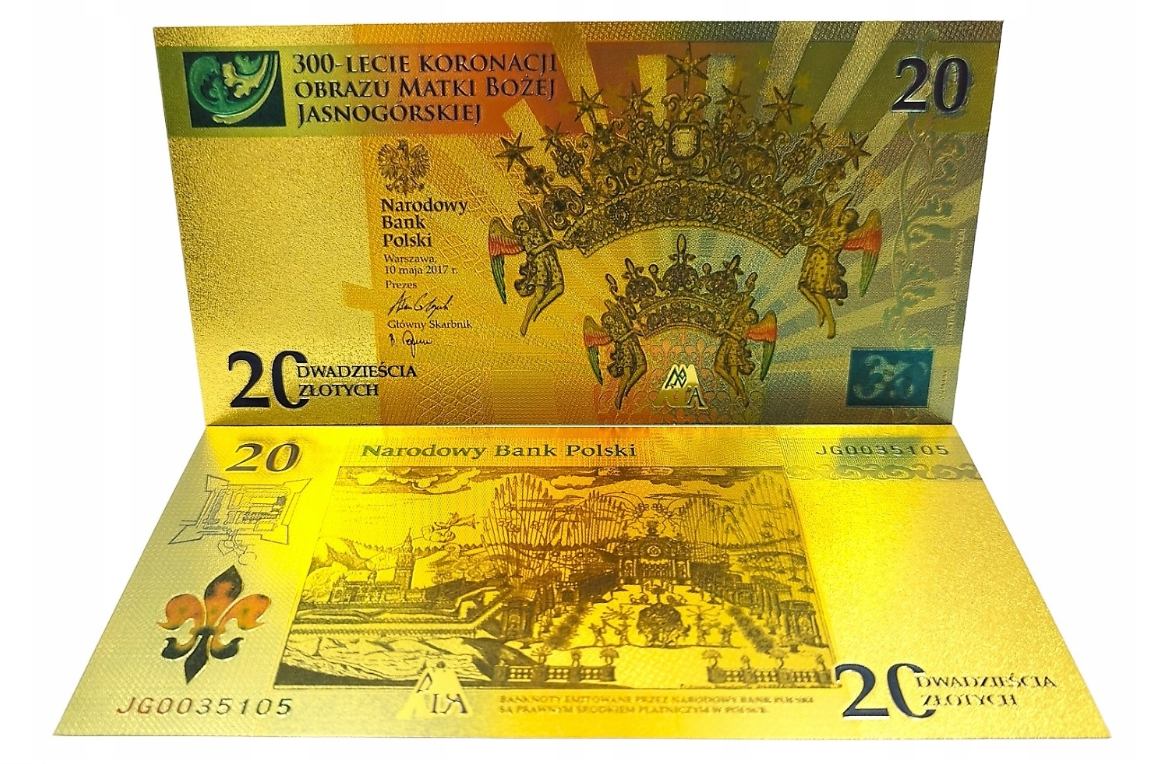 Komplet: pozłacany banknot, certyfikat, folder emisyjny.