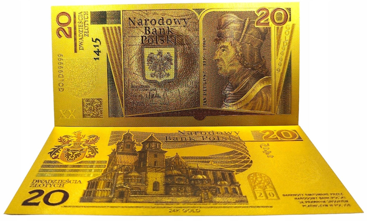 Pozłacany banknot kolekcjonerski 20zł Jan Długosz.