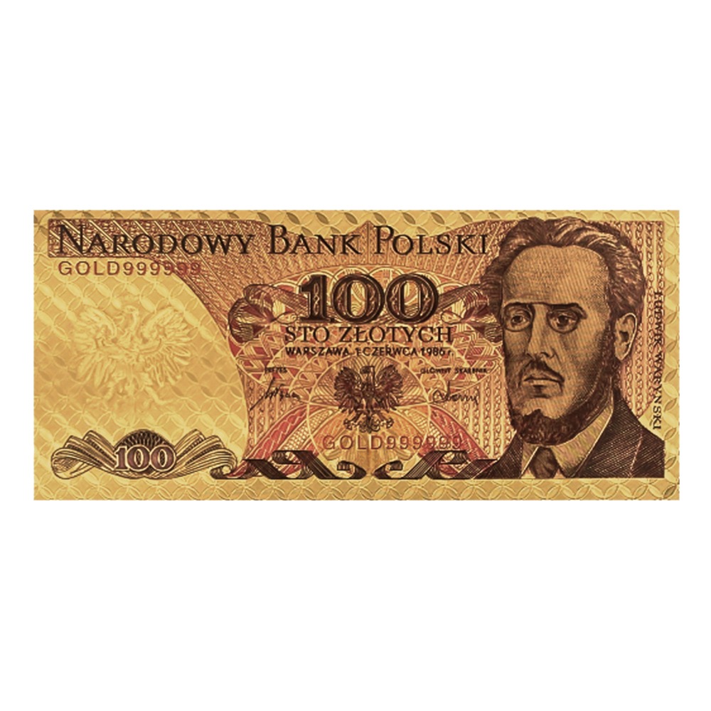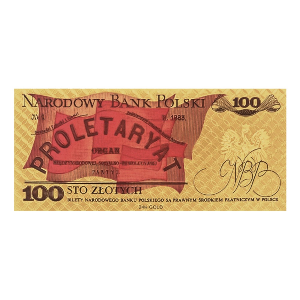 Banknot kolekcjonerski, pozłacany: „100 zł Ludwika Waryńskiego „