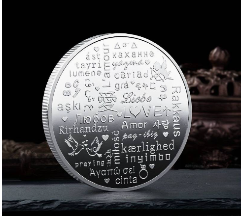 Na rewersie słowo „kocham” w wielu językach, bo miłość nie pyta o