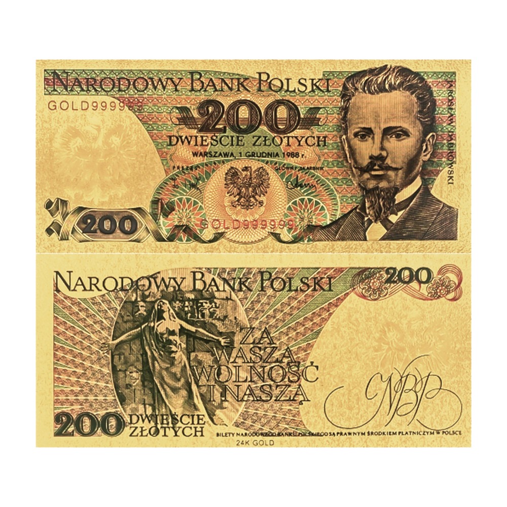 Banknot kolekcjonerski, pozłacany: „200 złotych Jarosława Dąbrowskiego”