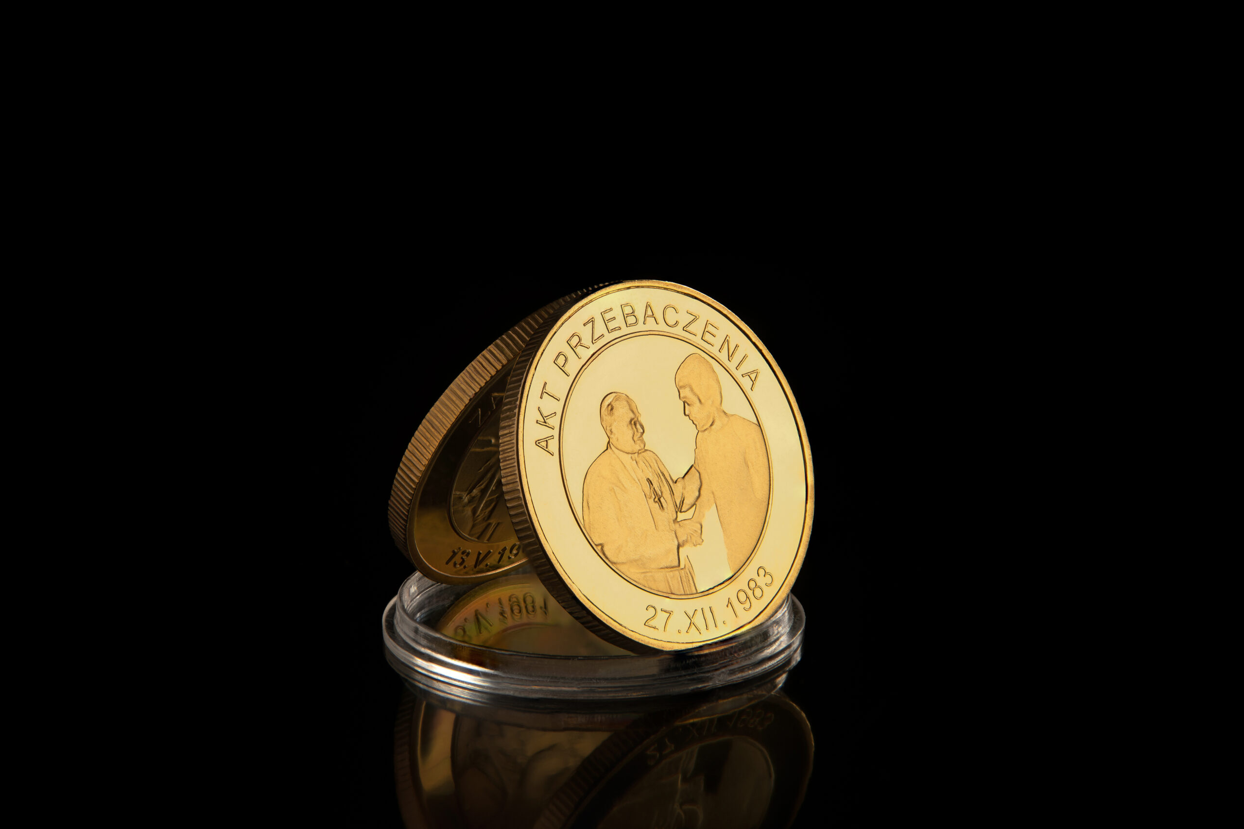 Kolekcja „Zamach na Papieża” składa się z dwóch numizmatów: ZAMACH i PRZEBACZENIE.