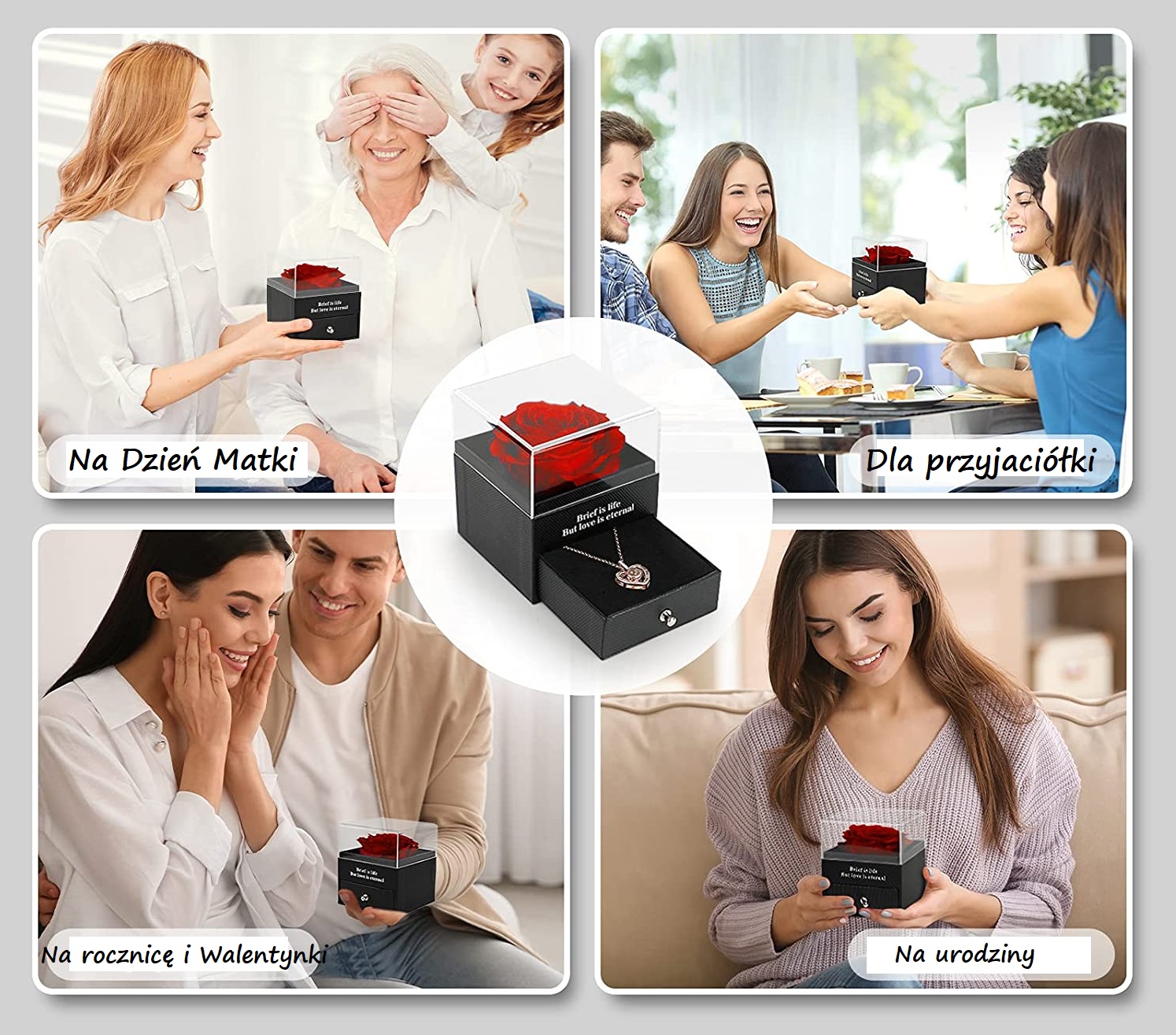 Zaskocz swoją uroczą żonę, dziewczynę lub sympatię wspaniałą, wieczną różą w Pudełku z naszyjnikiem! To wyjątkowy sposób, aby pokazać, że Ci zależy! Jest to idealny prezent dla każdej wyjątkowej osoby: